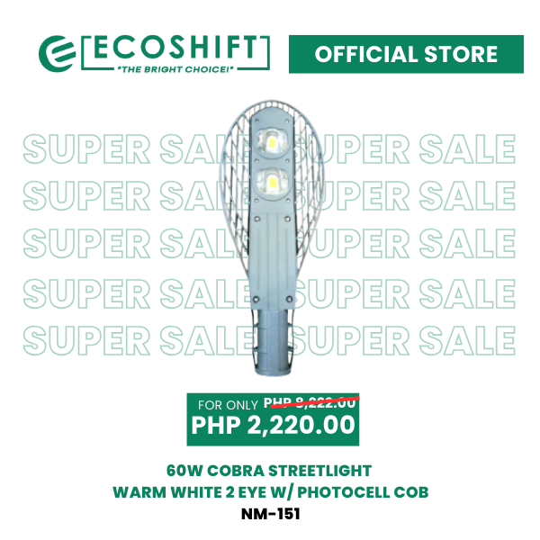Super Sale Cobra Streetlight 60W Warmwhite 2 Eye w/ Photocell COB